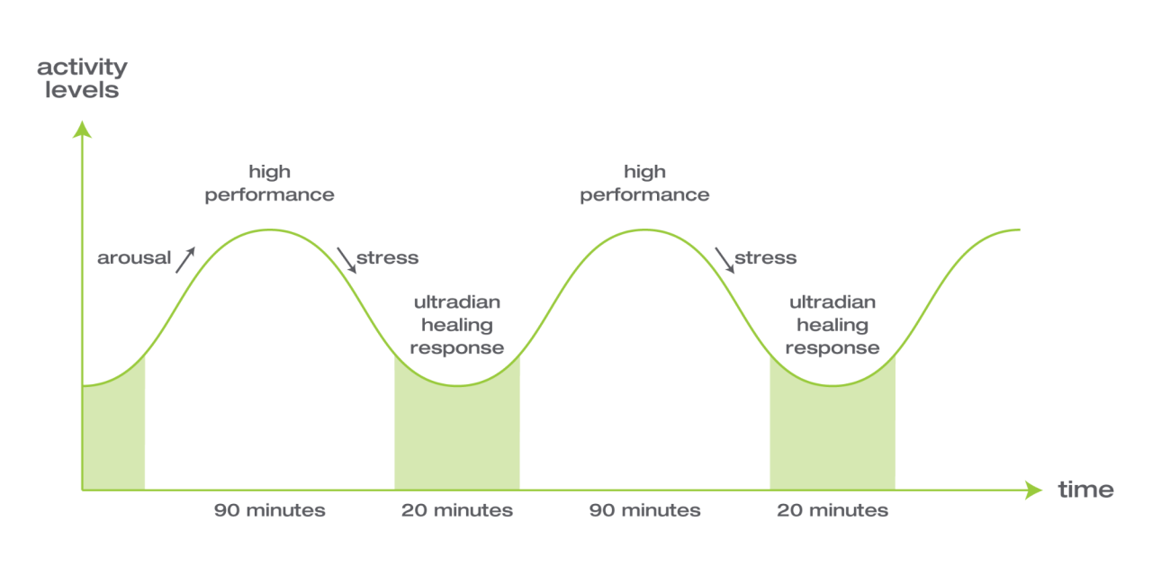 By following ultradian cycles, you can work in tune with your specific energy patterns that occur naturally throughout the day.